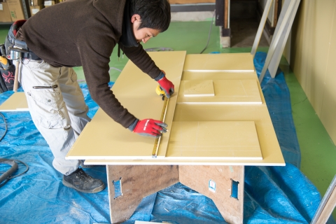 リフォーム、新築住宅、事務所改装等の床工事を施工させていただきます。フローリング、クッションフロア、畳、カーペット、タイルカーペット、フロアタイル等施工場所によって選んでいただくことができます。また、事務所改装、新築等で人気の、床の上にネットワーク配線などのための一定の高さの空間をとり、その上の別の床を設け二重化した「OAフロア」の施工も可能です。