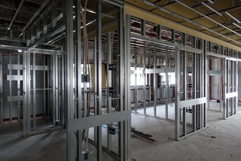 戸建て、マンション、公共施設、商業施設等、内装工事の壁、天井で多く使われている軽量下地です。比較的低コストで仕上がりも早いため工期を短縮することができます。